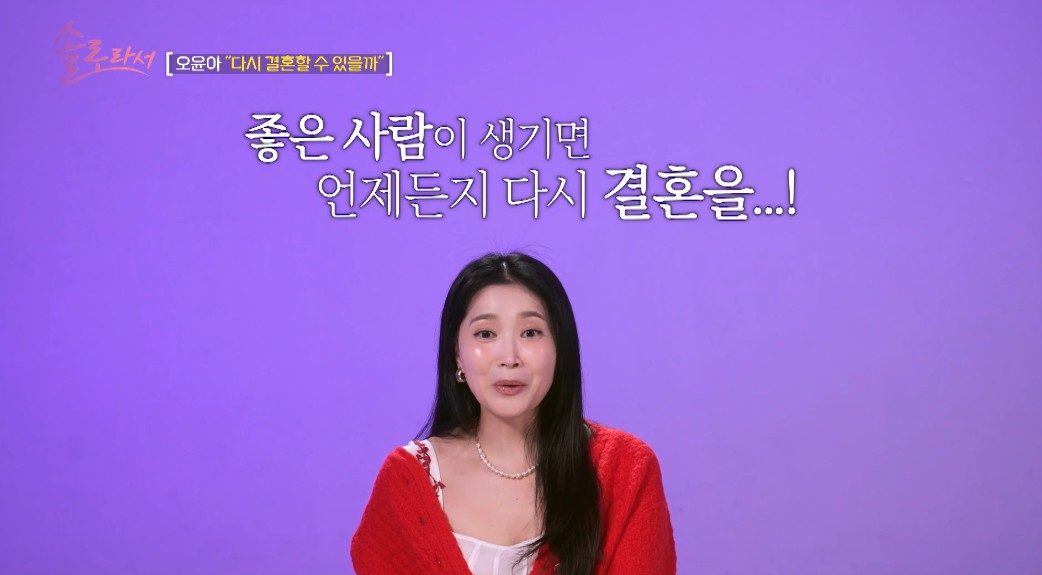 '솔로라서'에서 배우 오윤아가 재혼과 둘째 아이에 대한 욕심을 드러냈다.