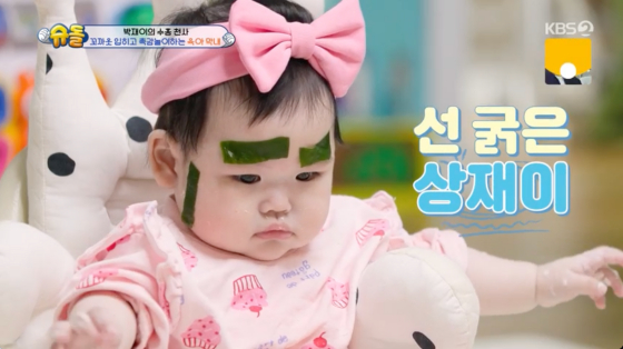 박수홍은 이에 그치지 않고 재이에게도 미역으로 만든 송충이 눈썹, 구레나룻 분장을 시도했다.