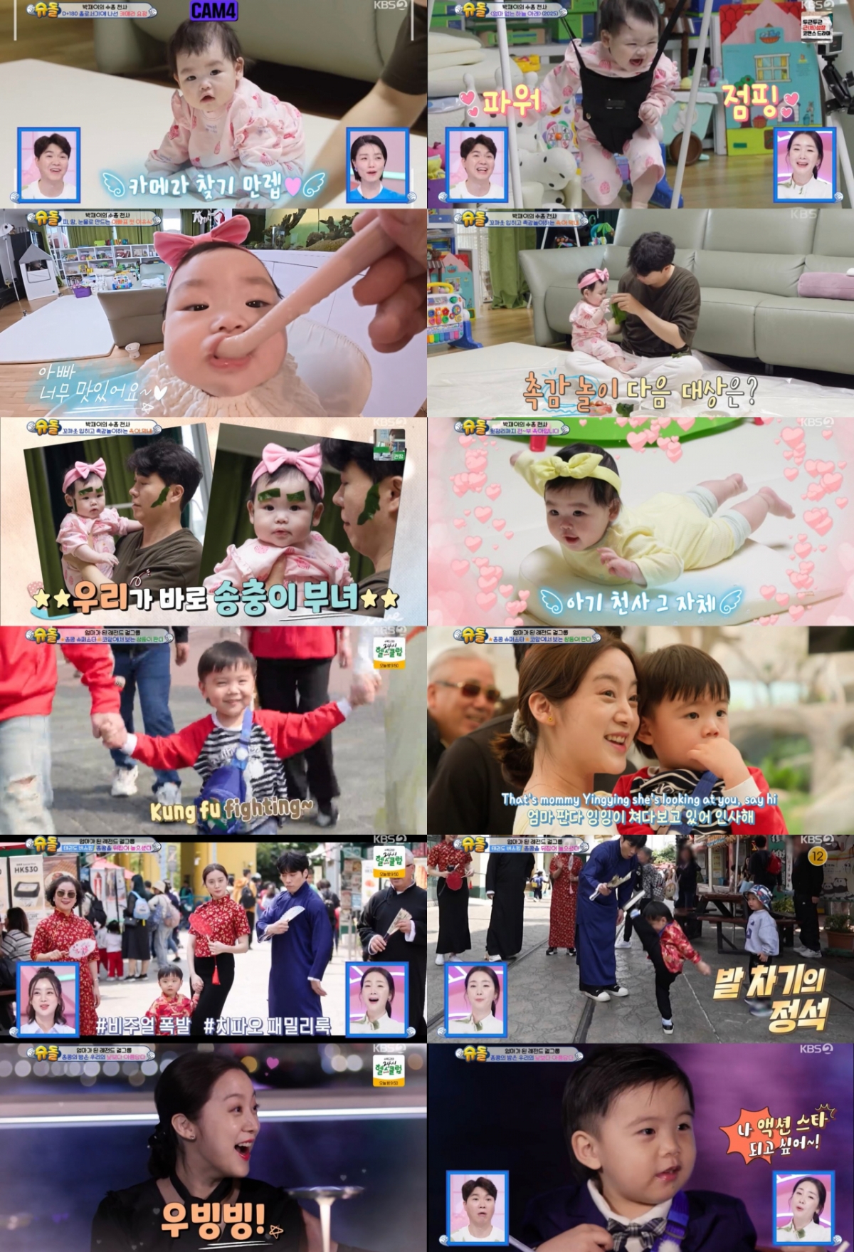 지난 7일 방송된 KBS 2TV '슈퍼맨이 돌아왔다' 572회는 '매일매일 사랑스러워' 편으로 3MC 박수홍, 최지우, 안영미와 슈퍼맨 우혜림, 박수홍이 함께했다. 이중 박수홍과 재이 부녀는 신나는 댄스타임을 가지며 이목구비부터 흥까지 쏙 빼닮은 '붕어빵 부녀'의 면모를 자랑했고, 우혜림 아들 시우는 차세대 액션 스타다운 퍼포먼스로 시청자들을 사로잡았다.
