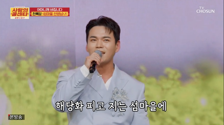사연 신청자는 어머니를 위한 선물로 '섬마을 선생님' 무대를 요청했다. 이에 천록담은 특유의 매력적인 음색과 구수한 창법으로 맛깔나는 무대를 완성했다.