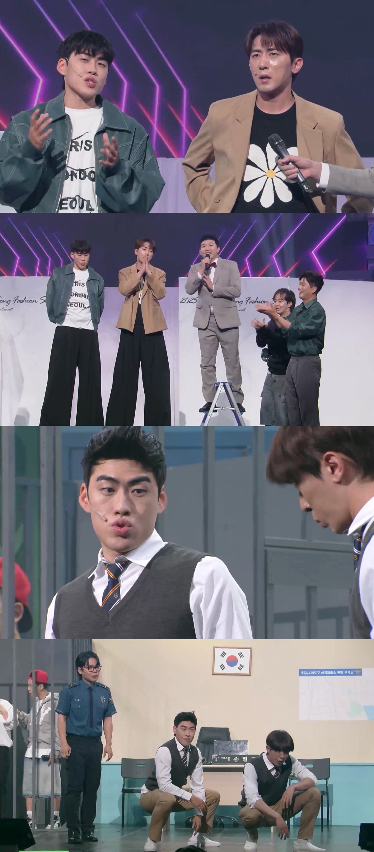 이날 김원훈과 조진세는 '런웨잇', '심곡 파출소' 두 개의 코너에 출연한다. 패션쇼에 모델이 부족해서 생기는 코너 '런웨잇'에서는 보기만 해도 웃음이 나오는 하이패션으로 시선을 사로잡을 전망이다. '심곡 파출소'에서는 비행 청소년으로 등장, 폭소를 부르는 티키타카를 선보인다.