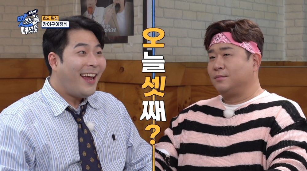 첫 번째 음식 장어구이 정식을 맛보던 멤버들(김준현 문세윤 황제성 김해준)은 사장에게 어릴 때부터 장어를 많이 드셨냐는 질문을 한다. 이에 사장님은 "많이 먹었다. 아이가 셋이다. 쌍둥이 아빠다"고 답하고, 이를 들은 김헤준은 화색을 띠며 "있는 것 다 주셔도 될 것 같다"고 말해 웃음을 안긴다. 김해준은 지난해 10월 개그우먼 김승혜와 결혼했다.