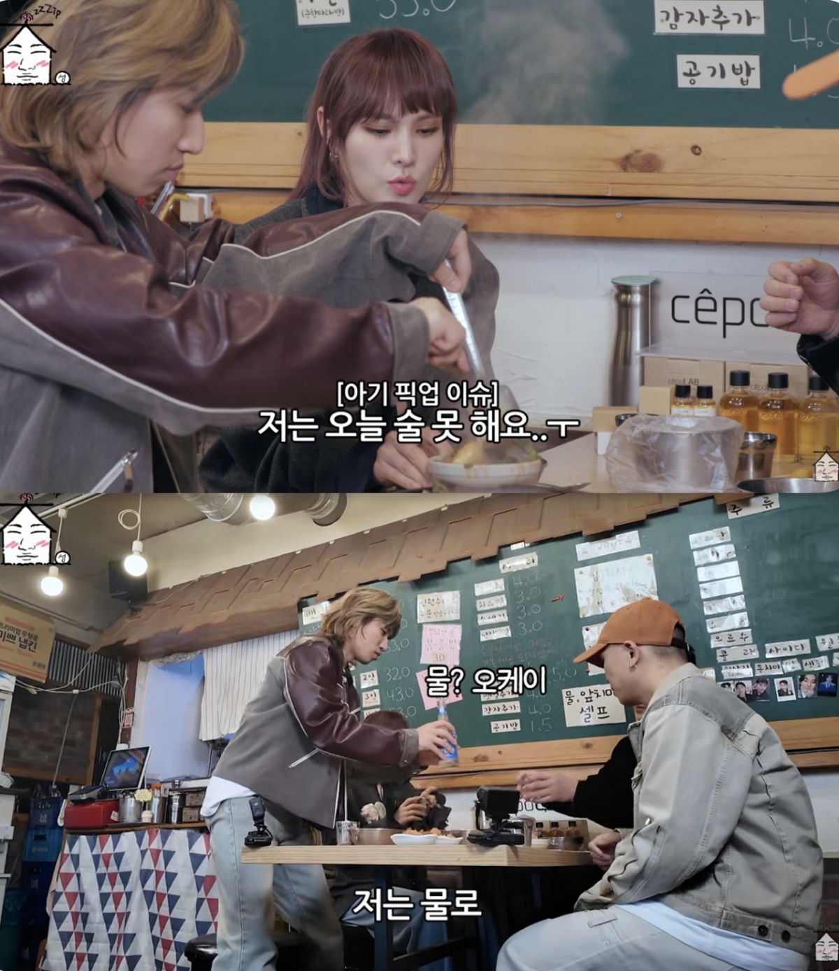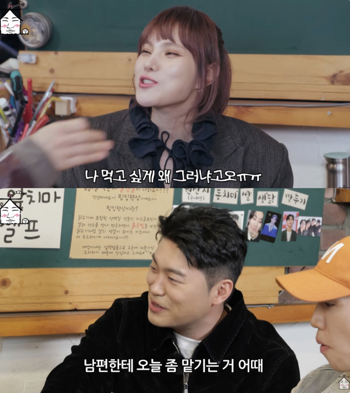 이후 대성이 "술이 달다"고 하자 거미는 "나 먹고 싶게 왜 그러냐"며 귀여운 투정을 부렸다. 이에 최자가 "남편에게 맡겨라"고 조언하자, 거미는 "남편이 해줄 수 있죠. 그런데 제가 (참는 것)"이라며 자발적으로 육아를 책임지고 있는 일상도 덧붙였다.