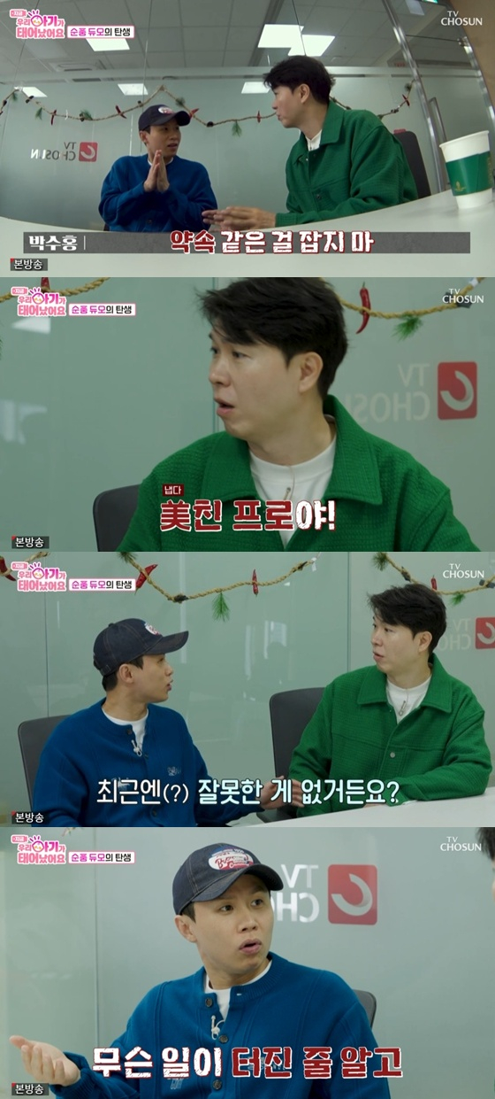 9일 첫 방송된 TV조선 예능 '우리 아기가 태어났어요'에는 MC 박수홍, 양세형의 만남이 그려졌다.