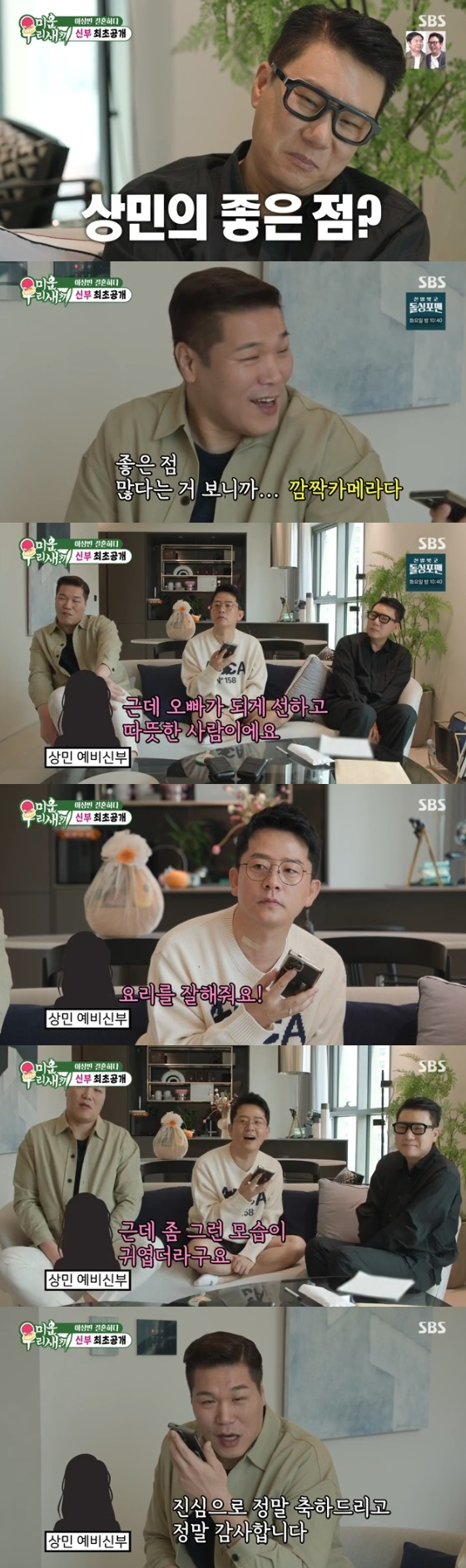 짓궂은 농담을 건네던 서장훈은 "상민이 형과 결혼해줘서 감사하다. 사람 하나 구했다고 생각하시라. 오래오래 행복하셨으면 좋겠다"고 전해 분위기를 훈훈하게 만들었다.