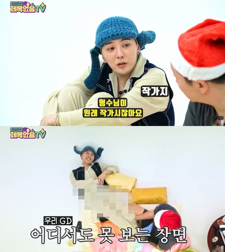 이날 정형돈의 유튜브 채널에는 지드래곤이 게스트로 출연했다. 두 사람은 이불에 누워서 토크를 진행했다.