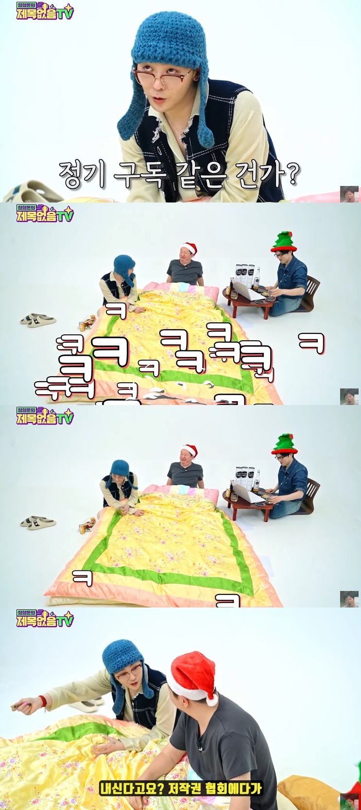 그러면서 정형돈이 "너랑 나랑 라이벌이긴 할 수 있다. 나 작사한 곡으로 저작권협회에 40곡 넘게 등록돼 있다. 나 이번달에 4만 9000원 나왔다"고 하자 지드래곤은 "정기 구독 같은 건가? 협회에서 관리해 주는 대가로? 나는 들어본 적이 없다"라고 정형돈을 놀렸다.