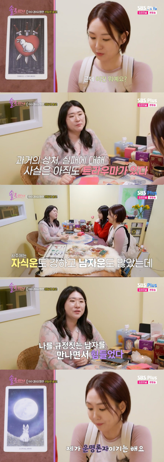 13일 방송된 SBS Plus, E채널 예능 프로그램 '솔로라서'에서는 이수경과 오정연이 타로점을 보는 모습이 그려졌다.