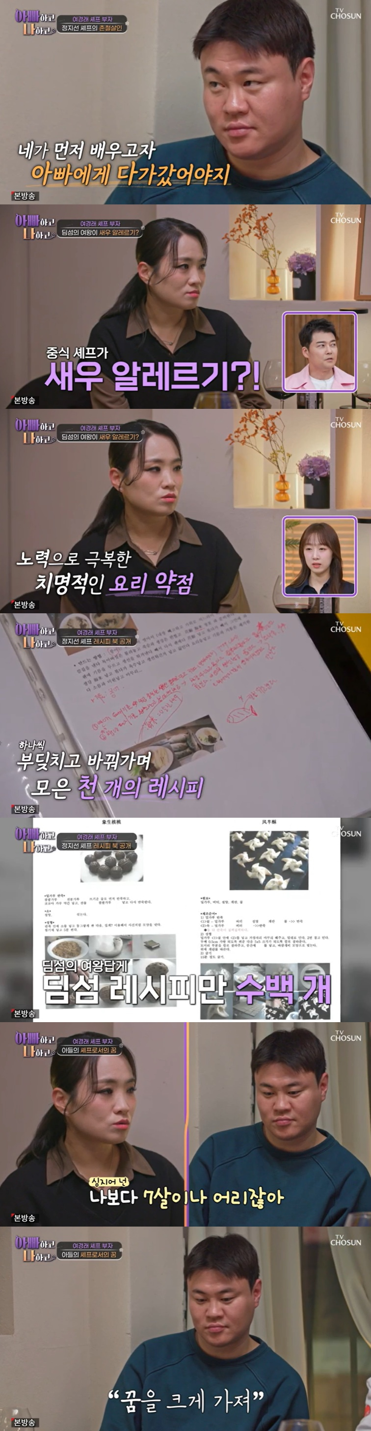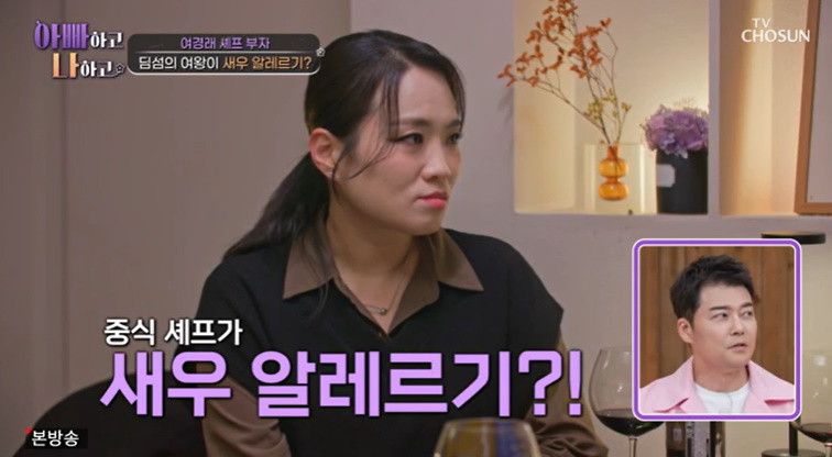 13일 방송된 TV조선 '아빠하고 나하고'에서는 여경래 셰프가 아들 여민 셰프와 함께 정지선 셰프를 만났다.