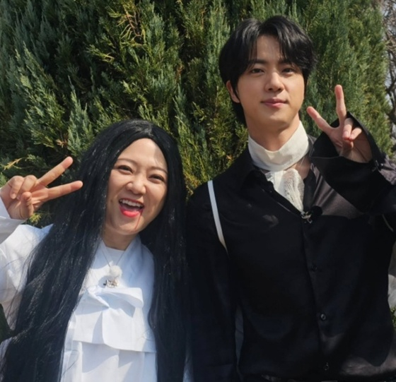 공개된 사진 속 김숙은 진과 함께 카메라를 향해 브이 포즈를 취하고 있다. 특히 김숙은 사진마다 진의 옆에 서서 환한 미소를 짓고 있어 눈길을 끌었다.