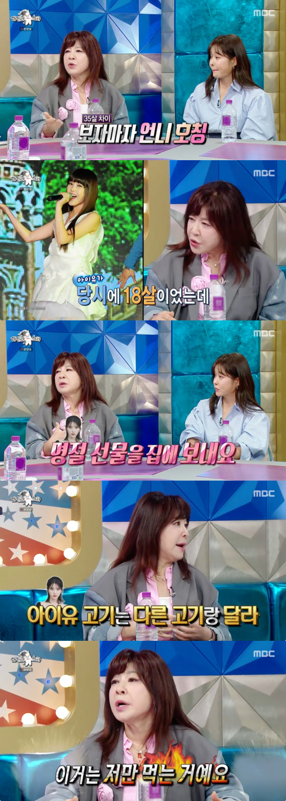그러면서 "아이유 고기는 다른 고기와 다르다. 특별한 선물이기 때문에 아들도 남편도 안 주고 저만 먹는다. 아이유의 선물들을 받아서 먹고 지금까지 건강한 것"이라고 흥분하며 말해 모두를 웃게 했다.