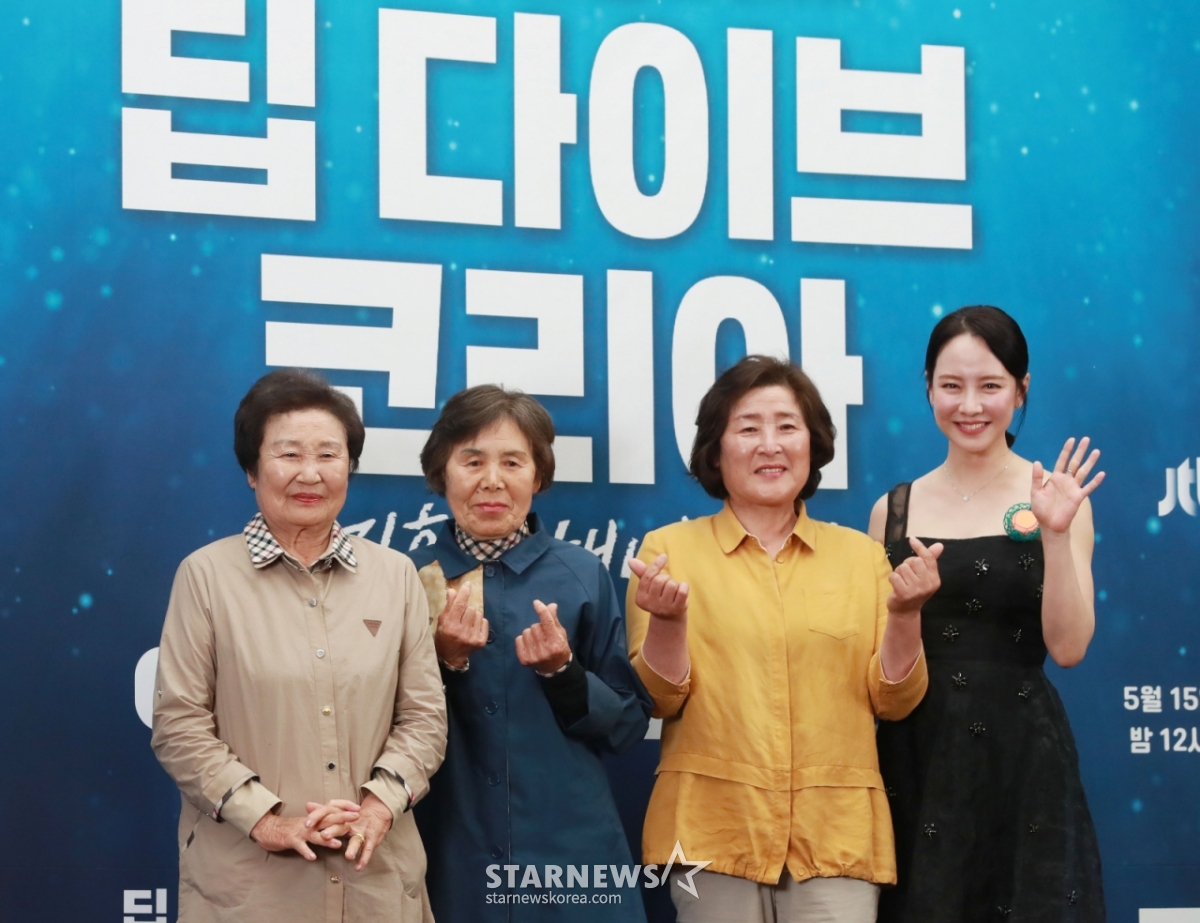 15일 서울 마포구 상암 스탠포드호텔에서 JTBC 다큐멘터리 '딥다이브 코리아: 송지효의 해녀 모험' 제작발표회가 진행됐다. 행사에는 허진 국장, 이후 PD, 배우 송지효, 제주 해녀 3인(박미정 오기숙 현순심)이 참석했다.
