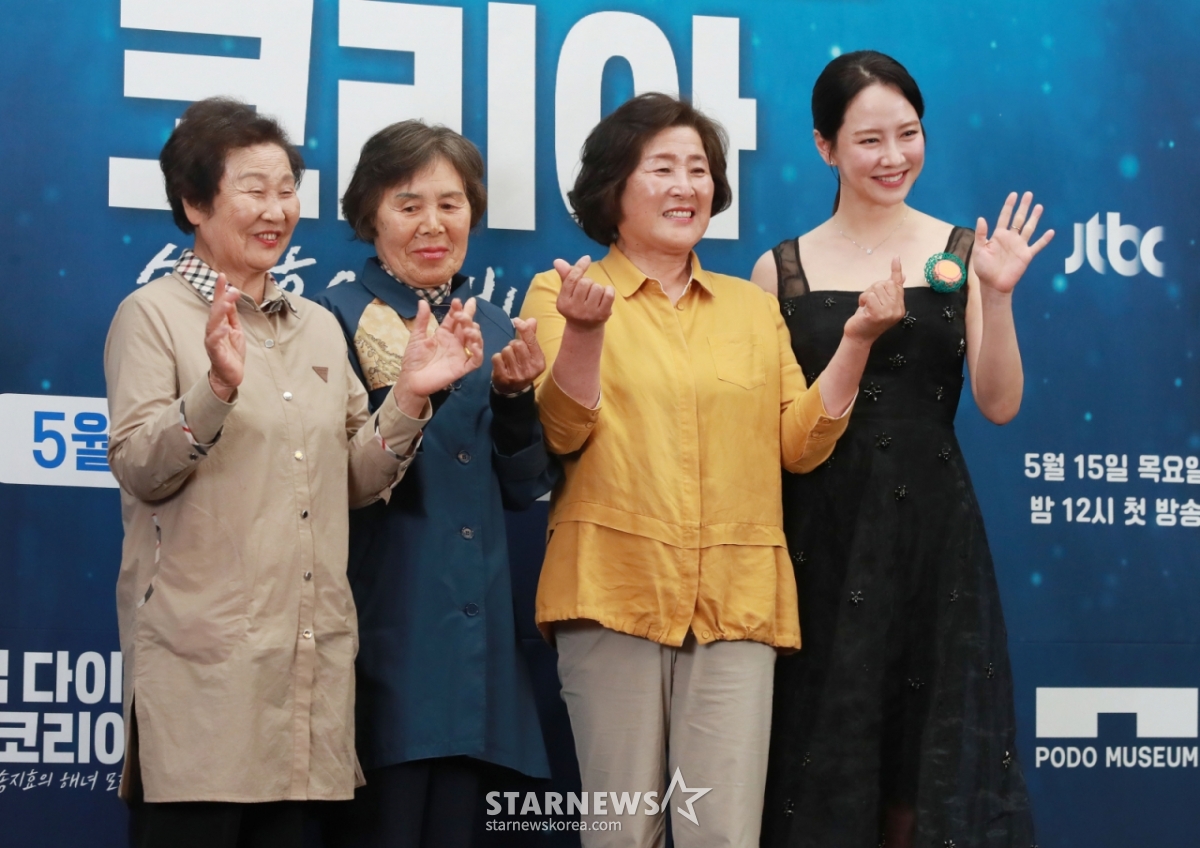 15일 서울 마포구 상암 스탠포드호텔에서 JTBC 다큐멘터리 '딥다이브 코리아: 송지효의 해녀 모험' 제작발표회가 진행됐다. 행사에는 허진 국장, 이후 PD, 배우 송지효, 제주 해녀 3인(박미정 오기숙 현순심)이 참석했다.