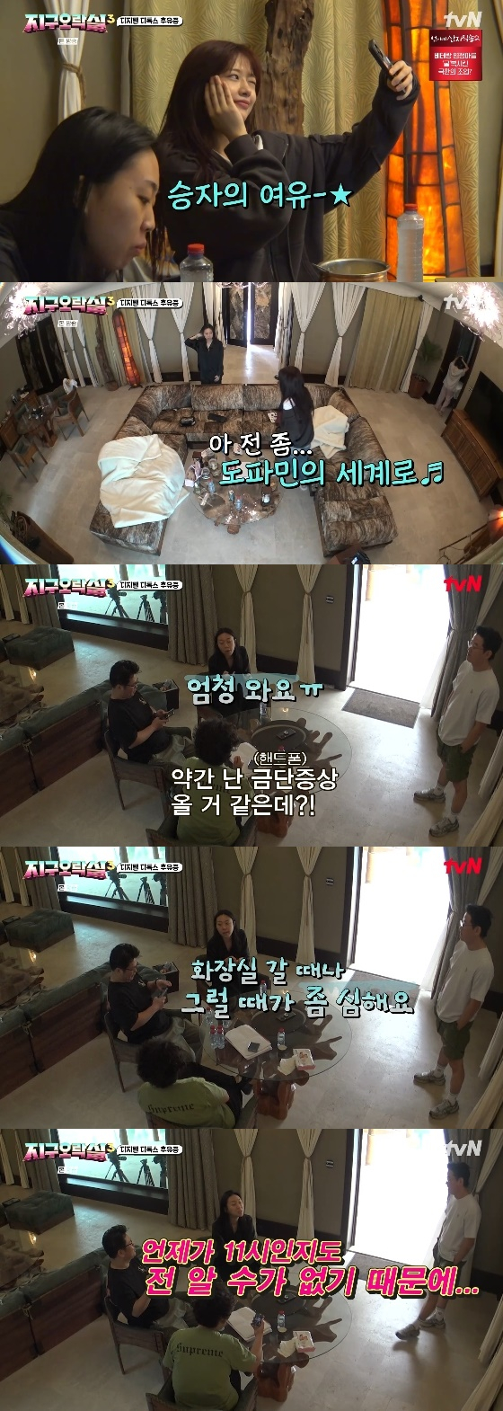 앞서 이영지는 휴대폰 없이 아침 8시에 일어나는 기상 미션에서 4위를 기록해 디지털 디톡스 70시간이 추가됐다. 미미와 안유진은 각각 17분과 25분의 오차를 기록해 휴대폰과 노트북을 돌려받았고, 이은지는 38시간이 추가됐다.