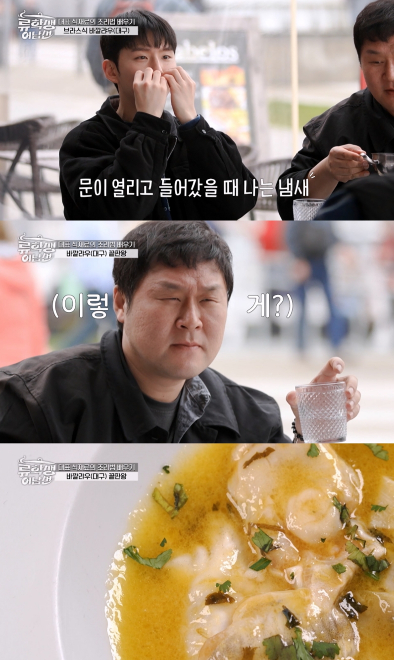 이후에도 조리법만 무려 천 가지가 넘는다는 바깔랴우 음식이 다양하게 쏟아져 나왔다. 이 중 포트와인에 졸인 바깔랴우 구이에 류수영은 "맵기가 없는 황태구이 맛"이라며 익숙한 맛에 호감을 표시했다. 또, 채썬 감자와 함께 곁들여 나오는 브라스식 바깔랴우 요리를 접한 기현은 "○○리아 입구 냄새가 난다"며 화들짝 놀랐다. 이어 류수영은 "'맛없없(맛이 없을 수 없는)' 메뉴라 평가하며, 한 입 먹자마자 진심에서 우러나오는 반응을 보였다.