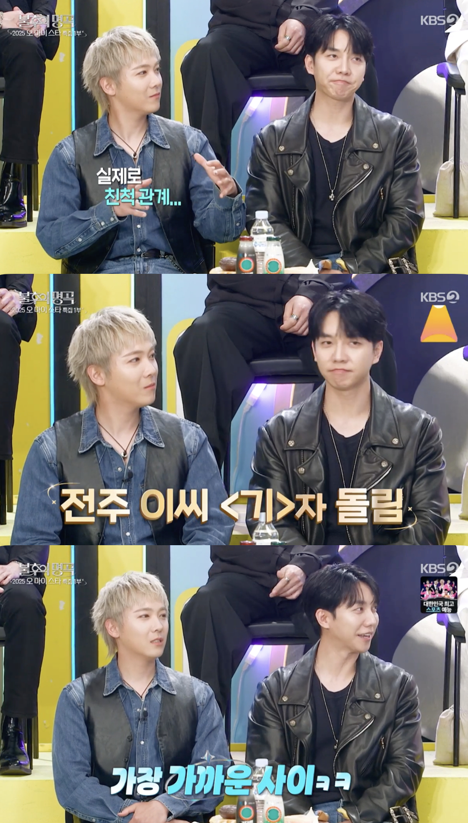 이날 듀엣 무대를 위해 출연한 이홍기와 이승기는 "실제로 친척관계다. 전주 이 씨 '기'자 돌림이다"라고 밝혀 놀라움을 안겼다. 이에 이승기는 "수많은 전주 이 씨 가운데 가장 가까운 사이다"라고 설명하며 친척설에 힘을 실었다.