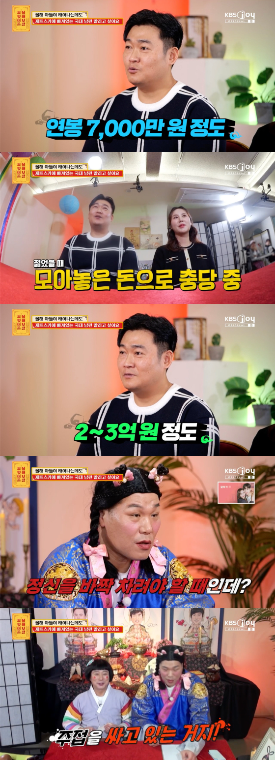 아내는 "제트 스키 타는 데만 1년에 1억 정도 들어간다"고 말했고, 남편은 "연봉은 7천만 원이다. 젊었을 때 모아놓은 돈도 있다"고 해명했다.