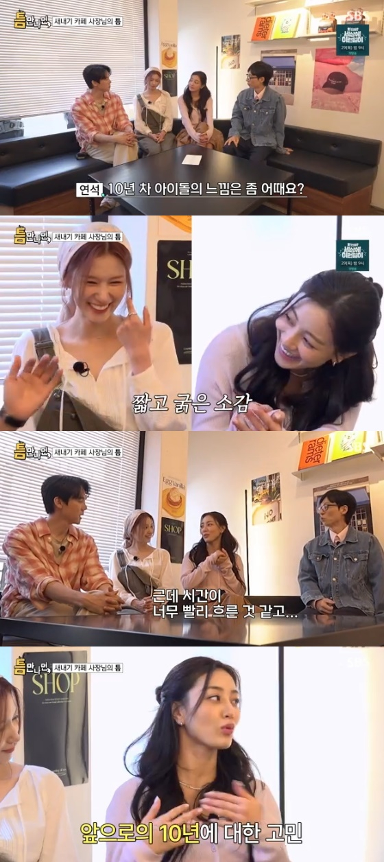 20일 방송된 SBS 예능 프로그램 '틈만 나면'에서는 트와이스의 지효와 사나가 '틈 친구'로 출격해 10년차 아이돌의 내공을 유감없이 발휘했다.