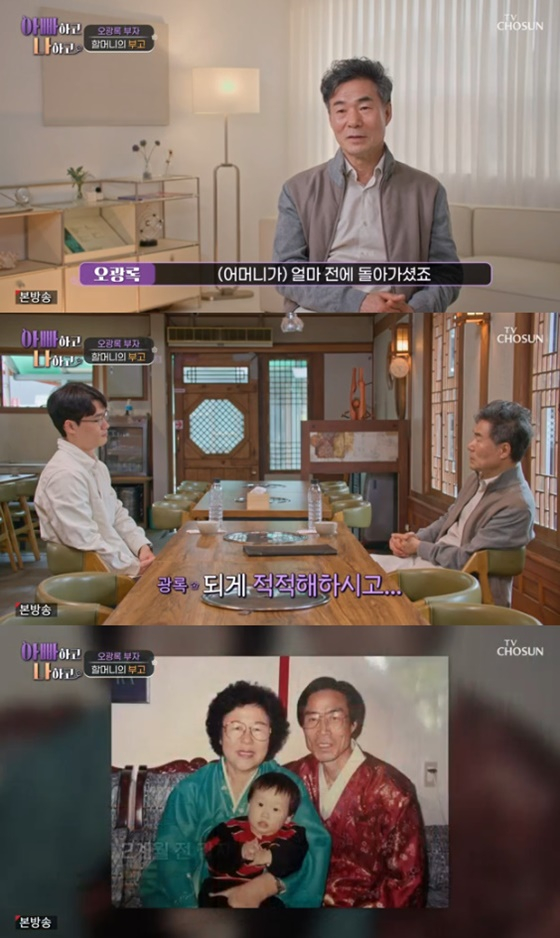 오광록은 최근 아버지를 만났다고 밝혔다. 그는 아들에게 "되게 적적해하신다. 할머니랑 올해 결혼 70주년이다. 할머니가 갑자기 떠나셨으니까 생각이 난다"라고 말했다.