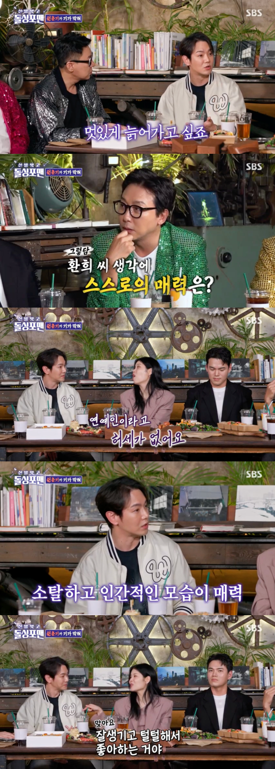 이에 탁재훈은 "많은 여자들이 환희의 어떤 모습을 좋아하는 것 같냐"고 물었고, 환희는 "제가 연예인인 척 하지 않아서 그런 것 같다"고 겸손하게 답했다.