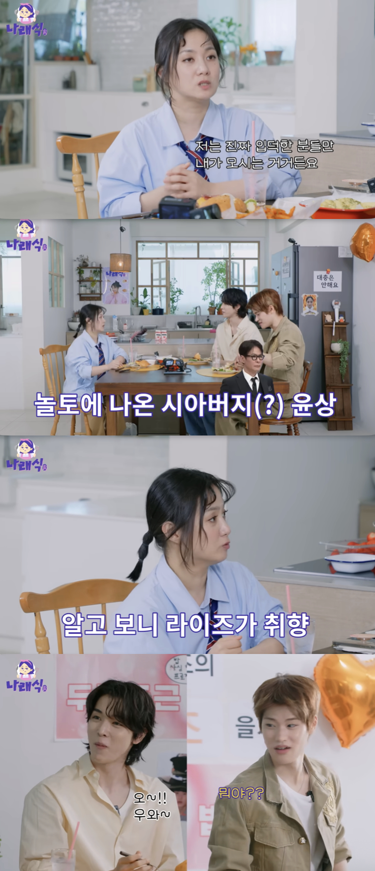 이날 방송에서는 라이즈 멤버 성찬과 소희가 출연해 박나래와 유쾌한 대화를 나눴다. 2001년생과 2003년생인 두 사람에게 박나래는 "오빠"라고 호칭하며 팬심을 적극적으로 드러냈다.