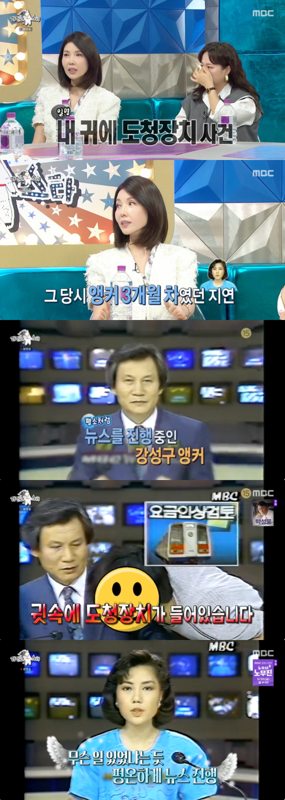 이날 백지연은 자신이 앵커 3개월 차에 겪은 방송 사고, 일명 '내 귀의 도청 장치' 사건을 언급하며 "해외 토픽에도 난 사건"이라고 말문을 열었다.