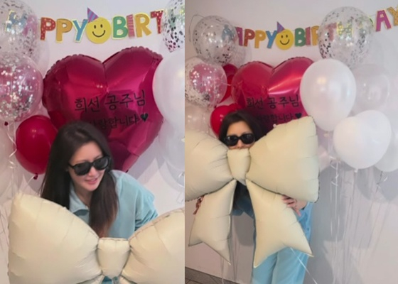 김희선은 22일 자신의 SNS에 "딩동 소리에 나갔는데 짜잔. 정말 생각 1도 못한 서프라이즈 생일 축하. (음력) 생일까지 챙겨주는 우리 힌지 가족들"이라고 적었다.