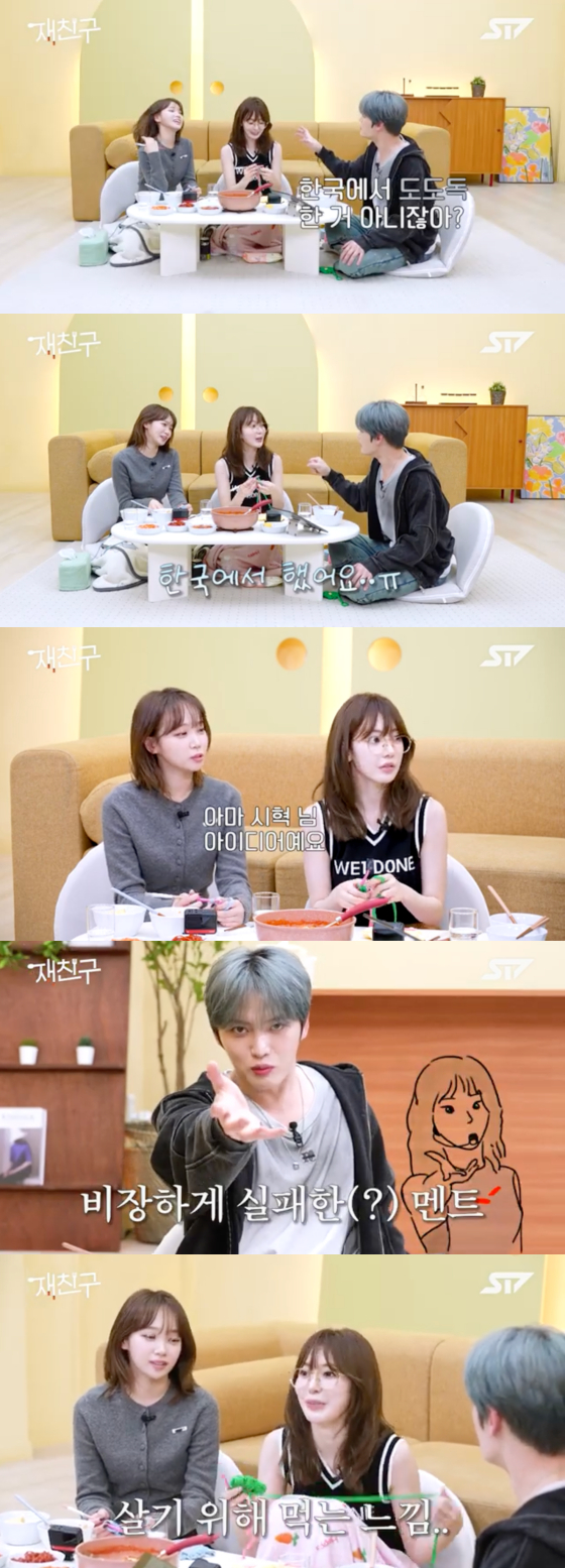 김재중은 "그럼 그 친구가 말을 많이 하면 된다. 다국적 그룹의 장점이 이런 거다. (김)채원이가 괜히 덤볐다가 '도도독' 이렇게 된 거다"고 김채원의 '도도독' 밈(meme)을 언급했다.