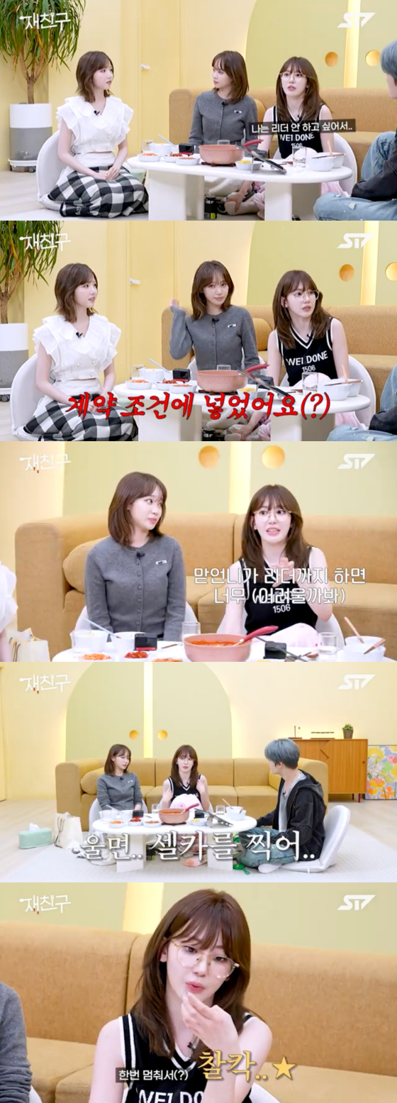 사쿠라는 리더에 대한 부담감과 '눈물 셀카' 사실을 털어놓기도. 그는 "저는 리더를 하고 싶지 않아서 계약 조건에 '리더 시키지 말아 주세요'라고 넣었다. 맏언니가 리더까지 하면 너무 어려울까 봐 그랬다"고 밝혔다.
