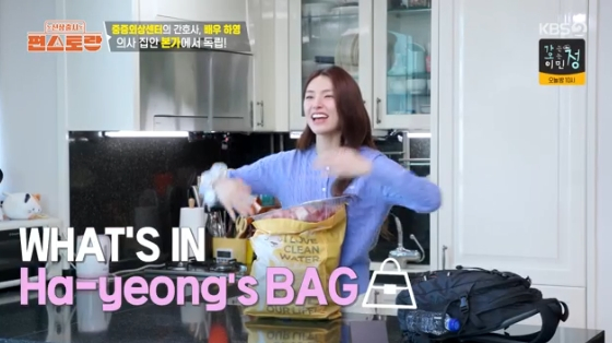하영은 "내가 챙겨와도 아무것도 모른다. 안 먹어서 다 썩는다. 제가 요긴하게 쓸만한 것들을 몽땅 가져왔다"라며 해맑게 웃었다.