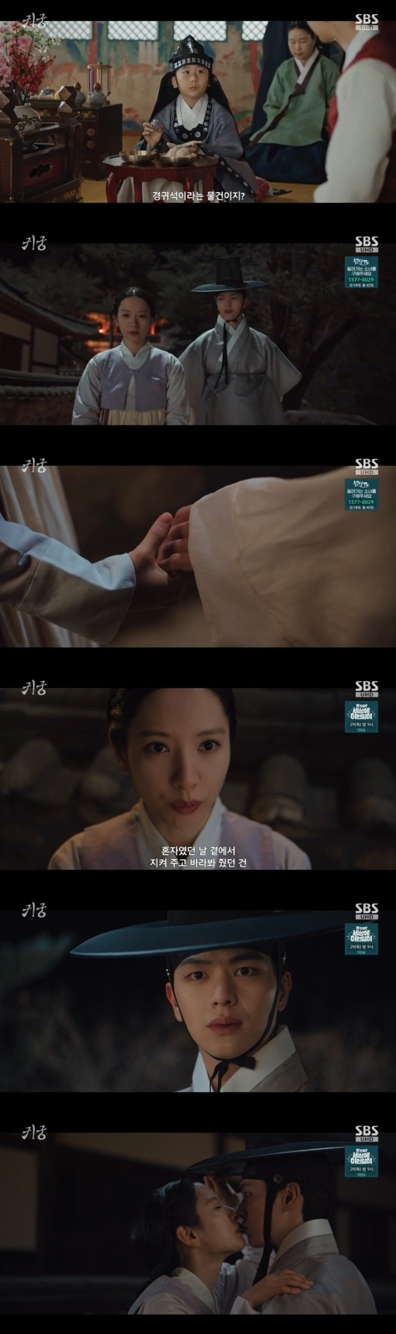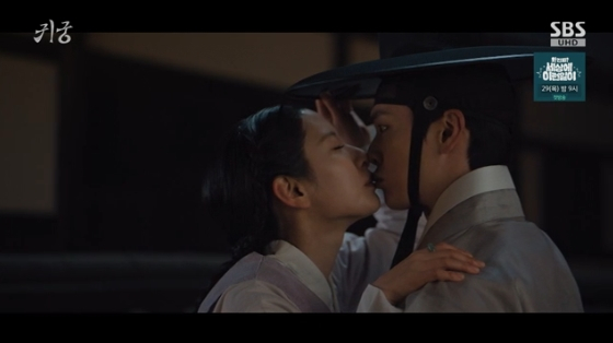 23일 방송된 SBS 금토드라마 '귀궁'에서는 경귀석(귀신 쫓는 돌)을 원자 이광(박재준 분)에게 넘겨준 뒤 강철이(육성재 분)에게 입맞춤하는 여리(김지연 분)의 모습이 그려졌다.