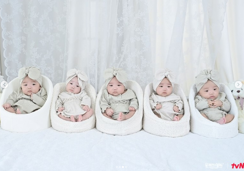 제작진은 "26주 차에 세상 밖으로 나온 아이들. 눈물 마를 날 없었지만 이제는 기운 팡팡 터지는 팡팡레인저! 다섯 빛깔의 매력을 가진