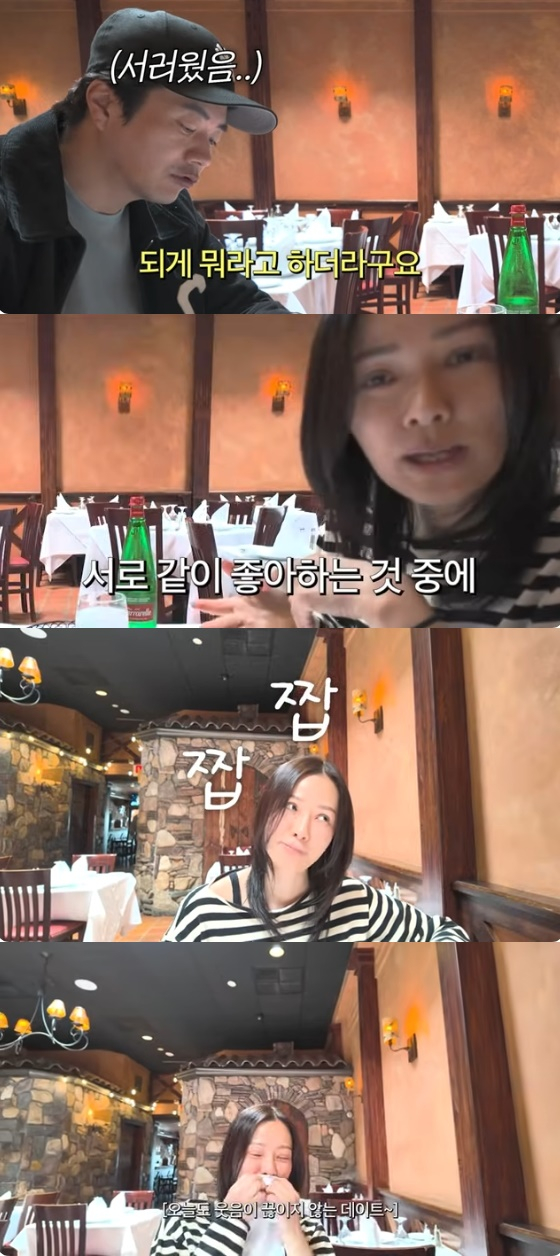공개된 영상에서 두 사람은 미국의 한 스페인 식당에서 데이트를 즐기며 티격태격한 모습을 선보였다.