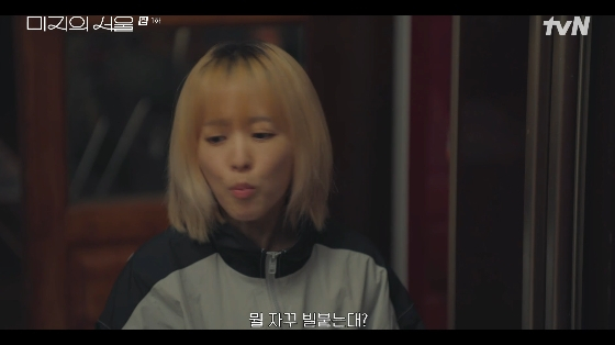 24일 방송된 tvN 토일드라마 '미지의 서울' 1회에서는 변변한 직업도 없이 마을의 일꾼 노릇을 하는 쌍둥이 둘째 딸 유미지(박보영 분, 유미래 역)에게 잔소리를 퍼붓는 김옥희(장영남 분)의 모습이 그려졌다.