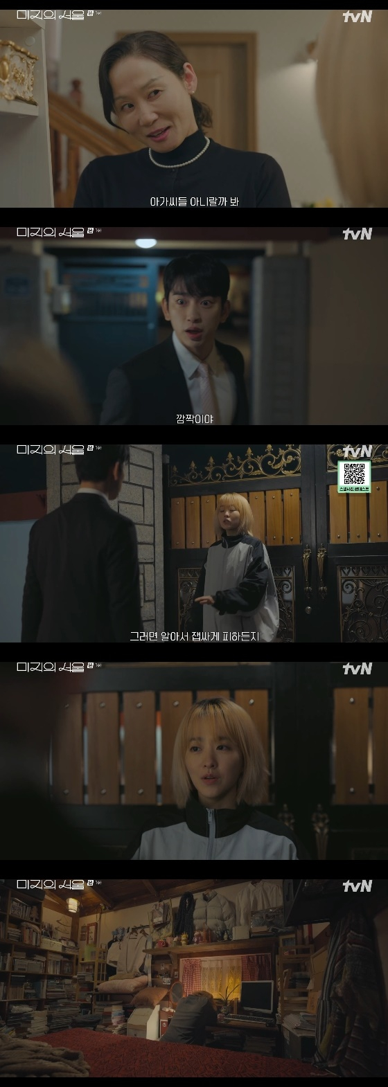 24일 방송된 tvN 토일드라마 '미지의 서울' 첫 회에서는 자신의 첫사랑인 이호수(박진영 분)과 맞딱뜨려 당황하는 유미지(박보영 분, 유미래 역)의 모습이 그려졌다.