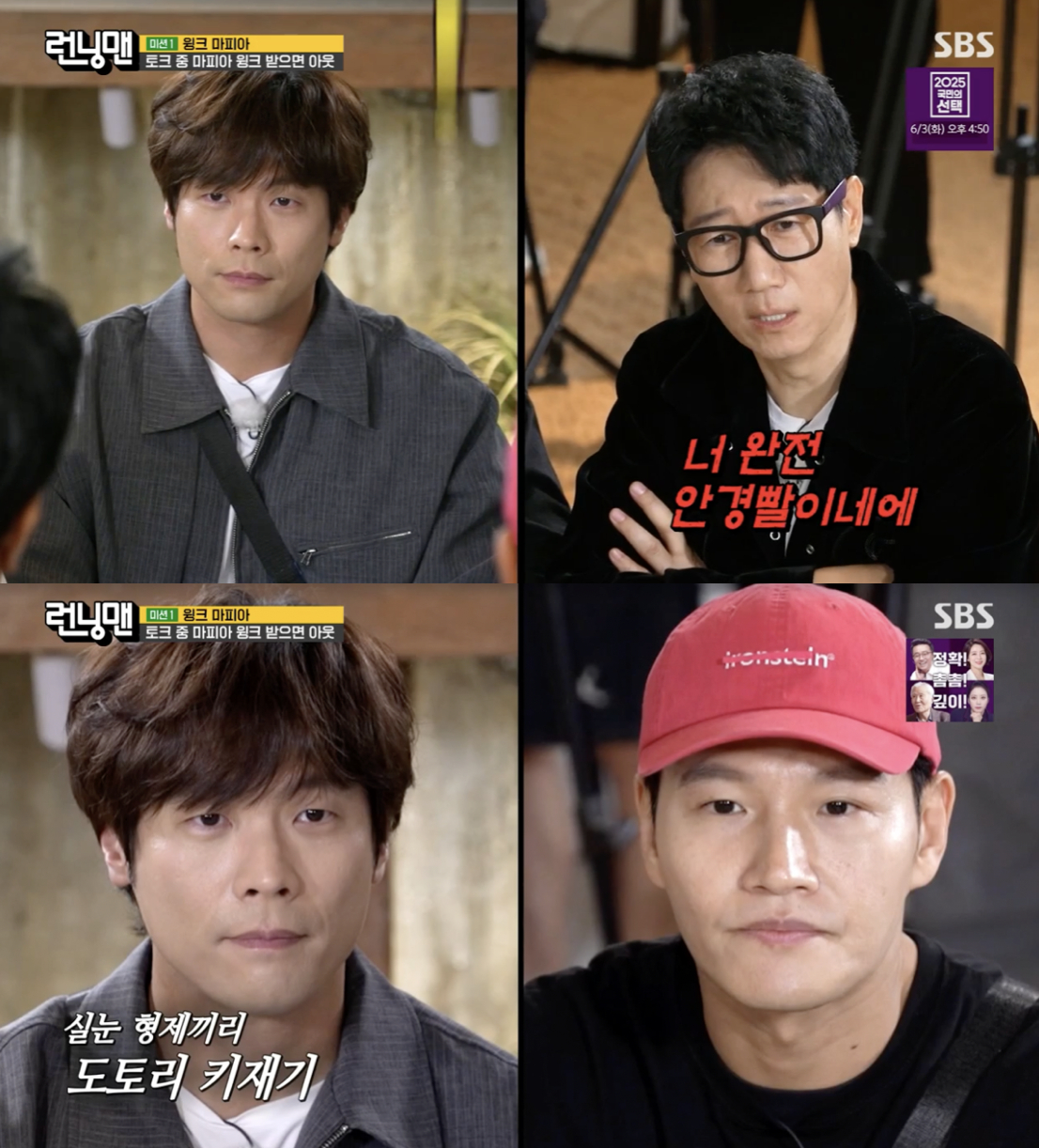 한편 이날은 '눈치 백 단 패밀리 윙크 마피아 게임'이 진행됐다. 게임 전, 안경 착용 여부가 유리할 것이라는 판단에 최다니엘이 안경을 벗자 지석진은 "너 완전 안경빨이었네. 심하다"라고 돌직구를 날렸다.