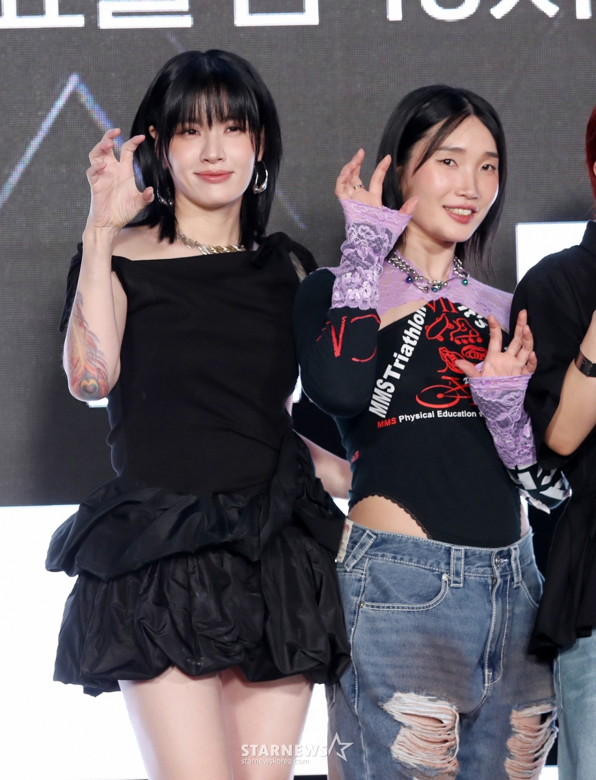 댄서 모니카, 립제이가 27일 오전 서울 강남구 에스제이쿤스트할레에서 진행된 Mnet '월드 오브 스트릿 우먼 파이터' 제작발표회에 참석해 포즈를 취하고 있다. /2025.05.27 /사진=김휘선 hwijpg@