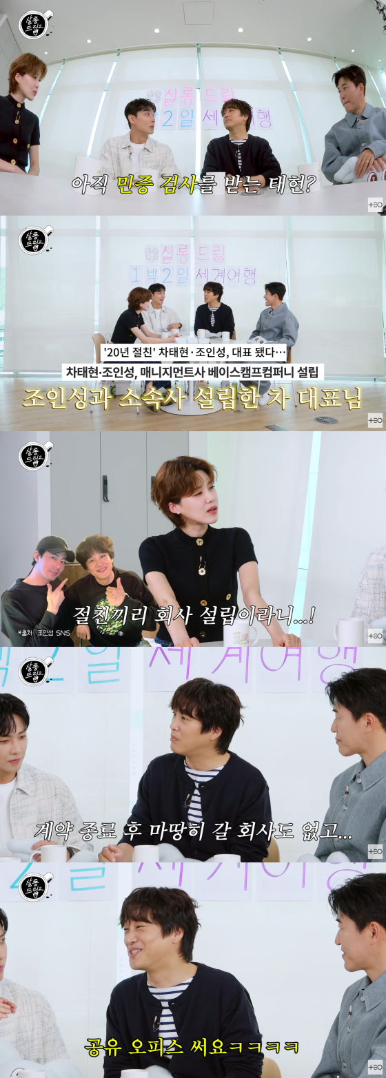 장도연이 "대표님 방도 따로 있냐"고 묻자 차태현은 "아직 없다. 공유 오피스 쓴다"고 답했다.