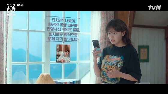 이날 한금주는 직장상사인 김수석(전진오 분)으로부터 입원 사진과 함께 "전치 2주 나왔다. 한선임 폭행 때문에. 민형사상 책임은 물론 회사에도 정식으로 문제제기 할테니 각오해"라는 문자를 받았다.