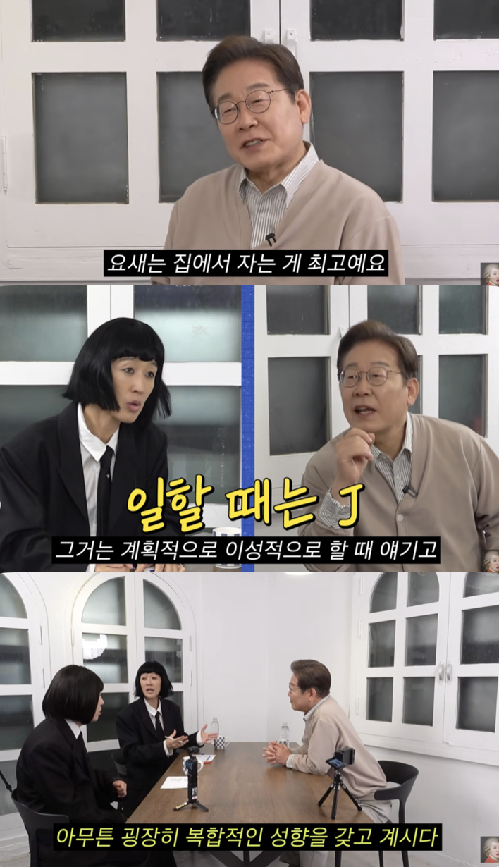 이어 이재명 후보는 "이성적으로 하는 일은 매우 계획적이고 치밀하게 플랜 B까지 짠다. 하지만 여행 가면 여행 계획표 짜놓는 건 싫어한다"고 말해, J(계획형)도 P(즉흥형)도 아닌 복합적인 성향을 드러냈다.