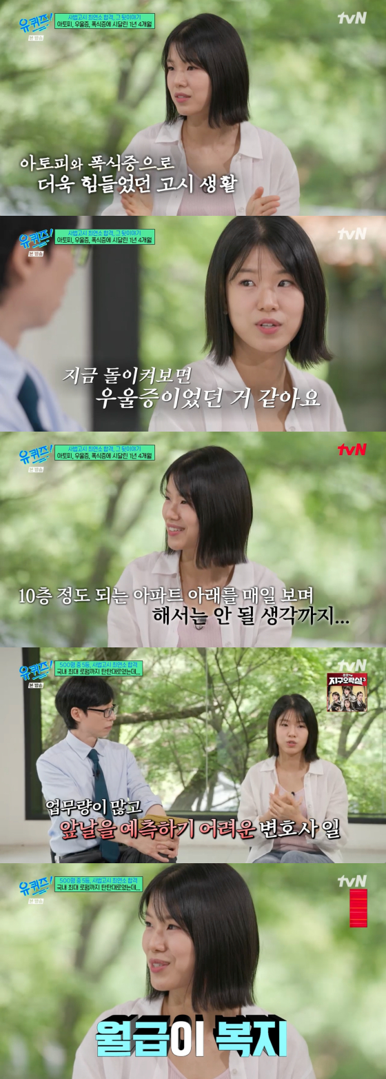 사법고시 최연소 합격자 박지원이 우울증에 시달린 지난날을 털어놨다.