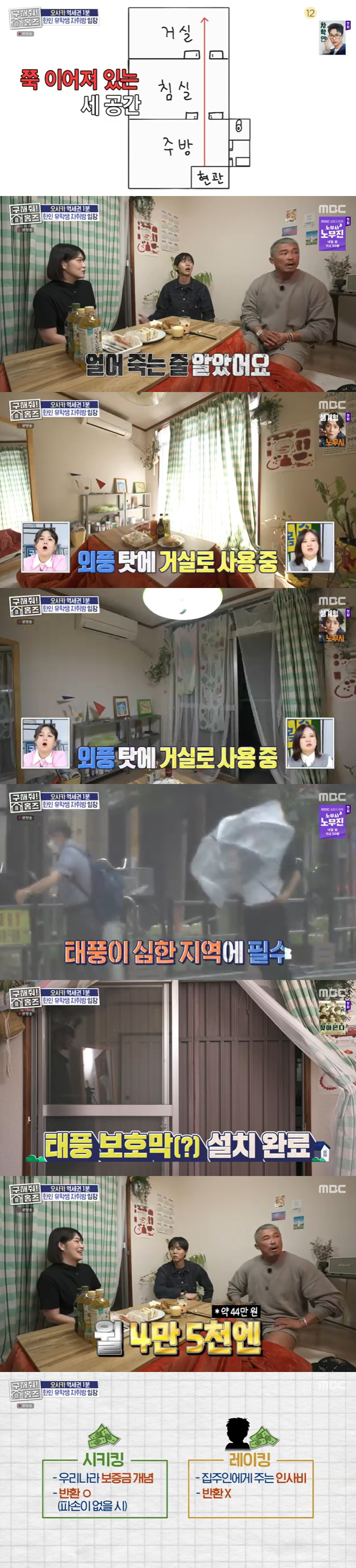 특히 이 집은 현관부터 주방, 안방, 거실 순의 구조가 돼 있었다. 구조가 독특하다고 하자 거주자는 "안방이 바깥쪽에 있으니 추워 죽는 줄 알았다"고 말했다. 이 집의 월세는 4만 5천엔(한화 44만 원 정도)이었다. 거주자는 "요즘엔 시키킹(보증금)과 레이킹(인사금) 모두 없거나 레이킹만 있는 경우가 많다"고 밝혔다.