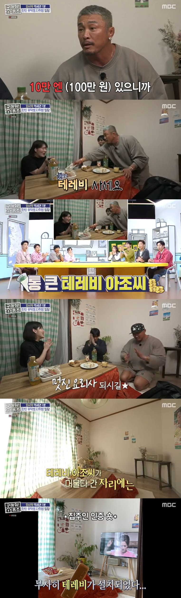 유학생은 2년 전, 일본에서 요리 공부를 시작했으며 최근 취업을 했다고 밝혔다. 이 집에 TV가 없는 것을 보고 추성훈은 "TV를 봐야 한다"라며 "방송을 통해 현지 문화도 배우고, 요리방송도 봐야 한다"라면서 돌연 자신의 지갑에서 10만 엔(100만 원) 현금을 꺼내서 "이걸로 (TV) 사세요"라며 거주자에게 선물했다. 추성훈은 "유학생인데 제가 해드릴 건 그런 것밖에 없어서 (돈을 줬다)"라고 말했다.
