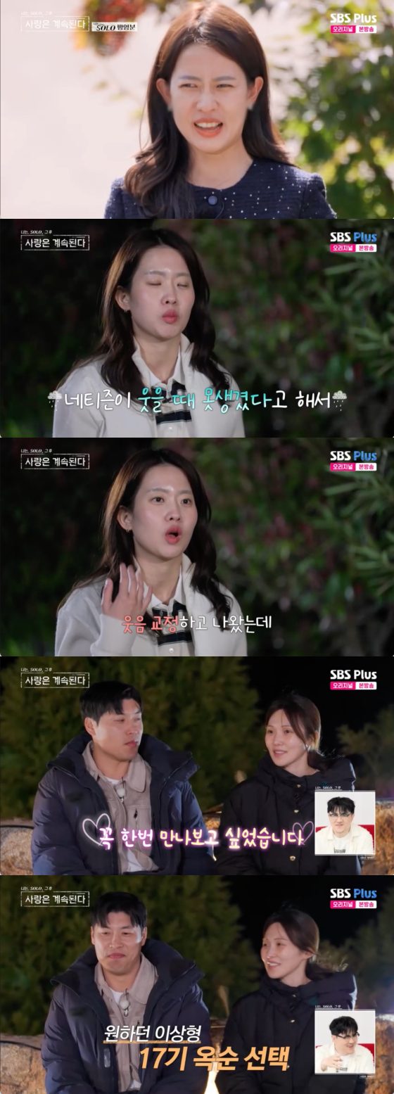 17기 옥순은 그런 영철을 향해 "방송에 비춰진 모습뿐이지만 (이상형이라고) 말해주셔서 감사하다"고 화답했다.