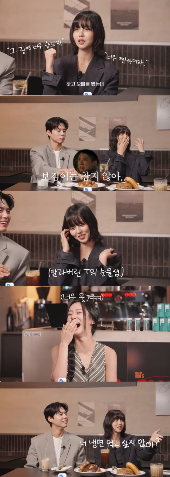 박보검은 "하이라트 장면을 배우들끼리 다 같이 보는 자리가 있었는데 처음 보니까 다들 눈시울이 붉어졌다"라고 떠올렸다. 이에 혜리는 "다 같이 붉어진 거 맞냐. 혼자만 붉어진 거 아니냐"라고 지적했고, 김소현은 "정확하다"라고 수긍해 폭소를 유발했다. 박보검은 당황한 듯 "허성태, 태원석, 이상이 배우 모두 서로의 눈을 바라봤다. 사실 소현씨만 T여서..."라고 해명했다.