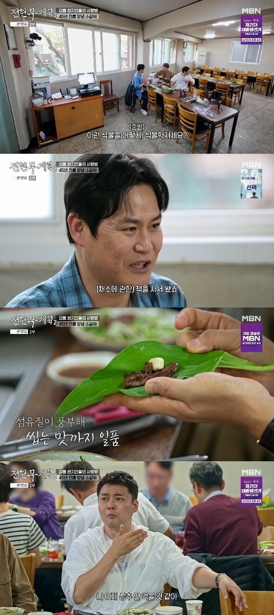30일 방송된 MBN, 채널S 공동 제작 예능 '전현무계획2'에서는 전현무와 곽튜브(곽준빈)가 '먹친구'로 등장한 김성균과 함께 강원도 강릉의 맛집을 방문하는 모습이 그려졌다.