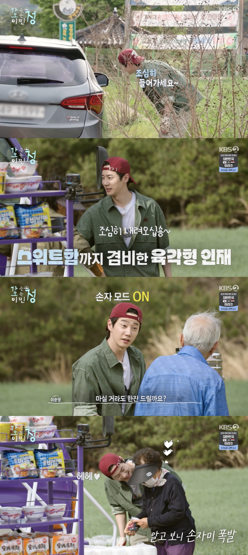 배우 이준영이 내성적인 성격과는 달리 농촌 마을에서 싹싹하고 따뜻한 매력으로 어르신들의 마음을 사로잡았다.