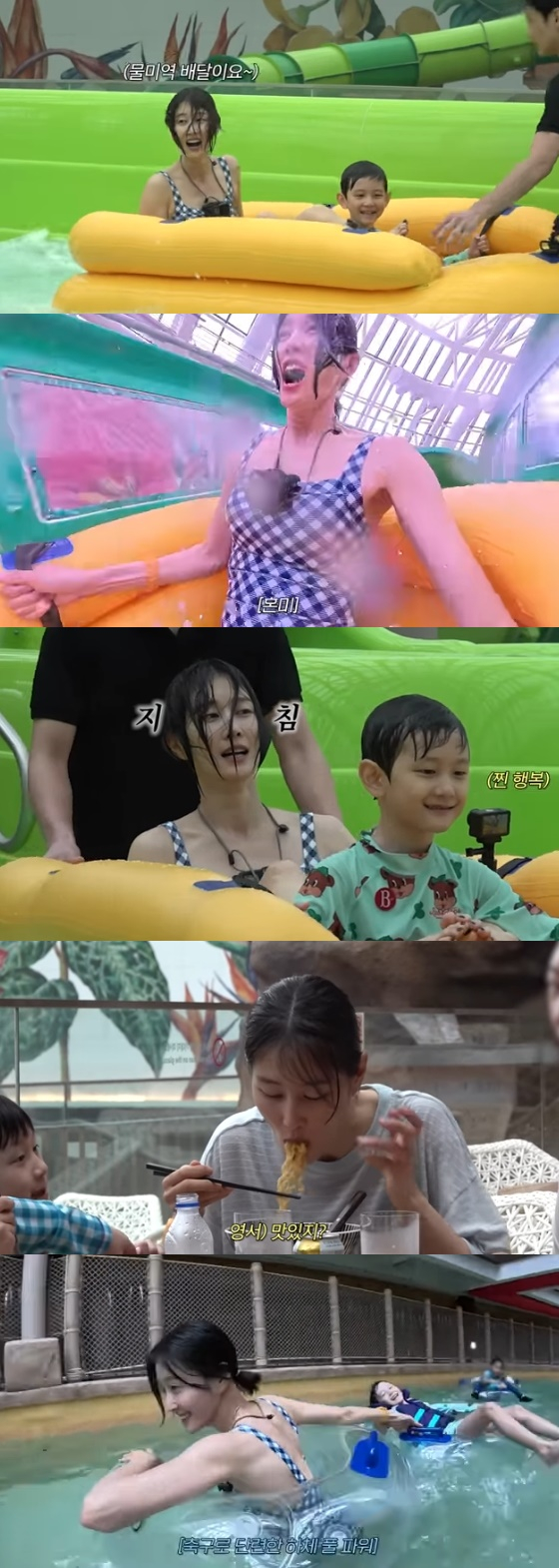 모델 이현이가 둘째 아들과 함께 워터파크 나들이에 나섰다.