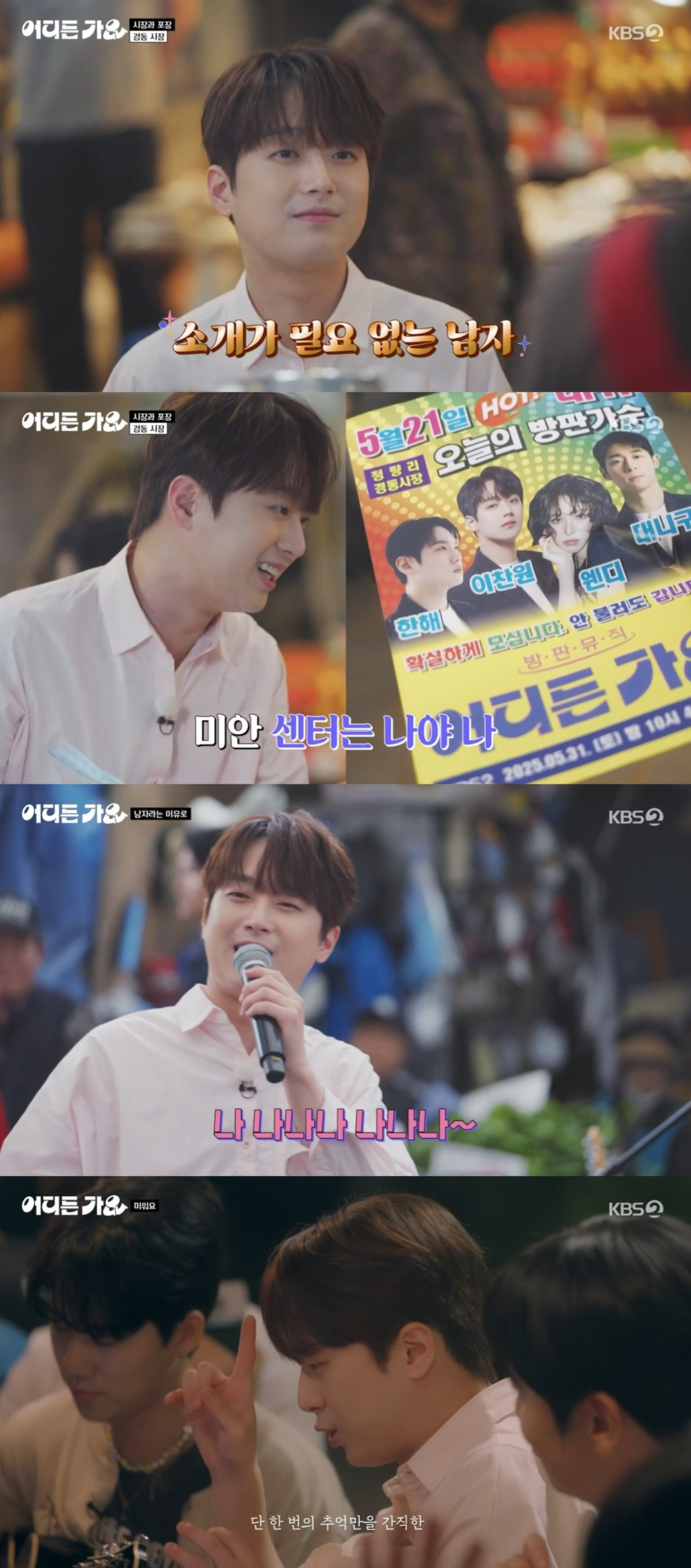 지난 5월 31일 밤 10시 40분 KBS 2TV '방판뮤직 : 어디든 가요'(이하 '방판뮤직')가 첫 방송된 가운데, 이날 이찬원은 멤버들과 함께 '하루의 시작과 끝'이라는 주제로 전통시장과 포장마차에 방문했다.