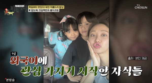 한그루는 "요즘 애들이 외국어를 물어볼 때가 많다. 잊어버렸는데, 티 내지 않고 유창한 척을 한다"라며 훌쩍 성장한 두 자녀, 쌍둥이 남매를 언급했다.